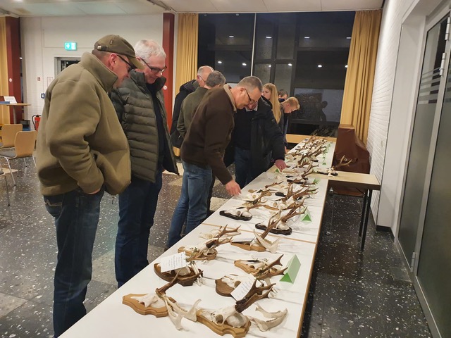 Neben der Versammlung des Hegering stand auch die sogenannte Gehörnschau aus den Jagdrevieren rund um Heiden statt. Hierbei wurden 51 Gehörne (Rehwild) und 6 Geweihe (Rotwild) bei der Bewertungskommission eingereicht. Gut ausgebildete Gehörne und Geweihe sind ein wichtiger Indikator, dass der Bestand an Wild gesund ist und keine Mangelernährung in den Revieren vorliegt. Die besten drei Gehörne wurden in folgender Platzierung geehrt: